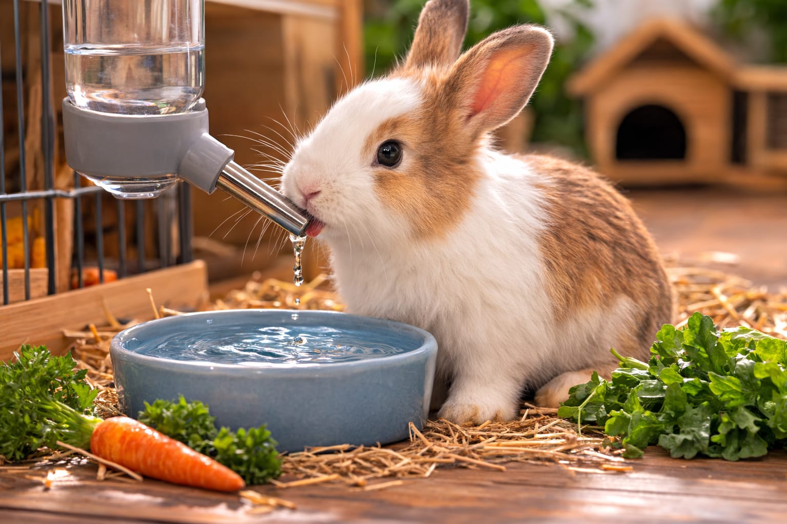 Iepurii trebuie să aibă apă proaspătă permanent.Apa poate fi oferită: