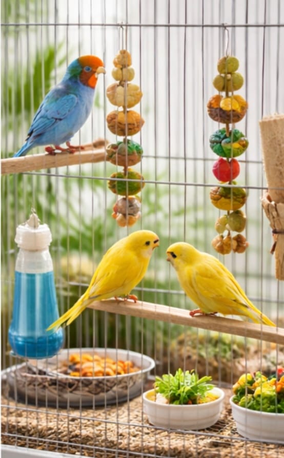 O colivie bine echipată trebuie să conțină câteva accesorii esențiale:- stinghii pentru odihnă